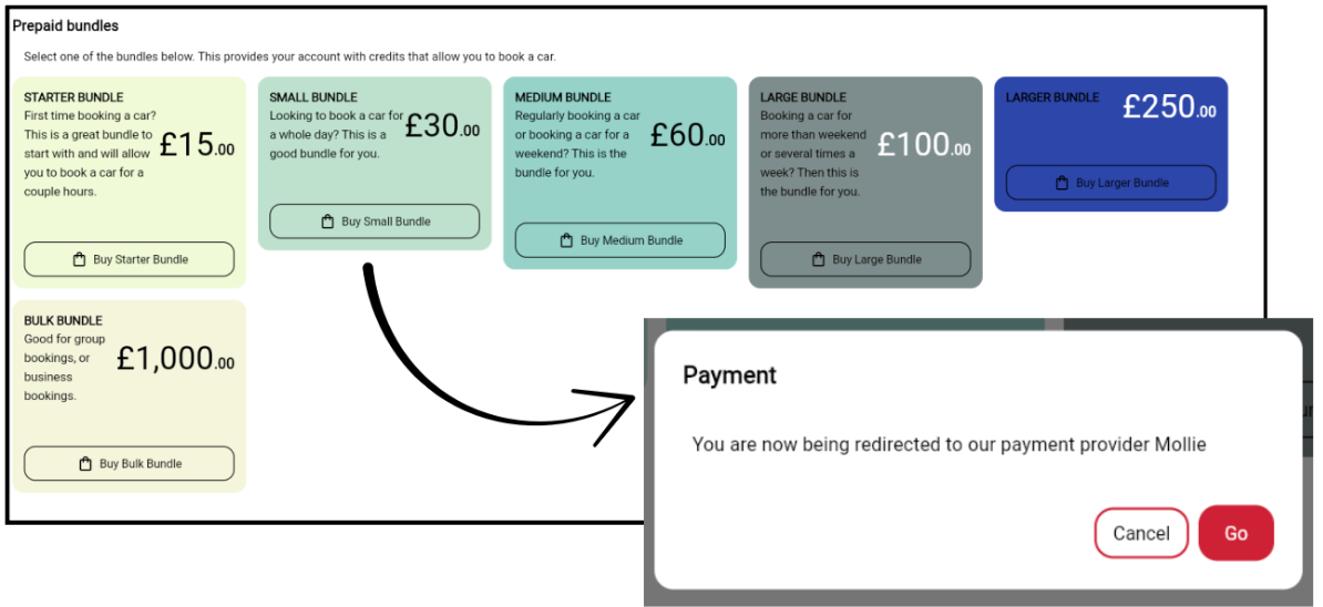 You’ll then be asked to select the bundle size you’d like to purchase: £15, £30, £60 or £100, £250 and £1000. Then, you’ll be taken to a secure payment portal to enter your payment card details.
